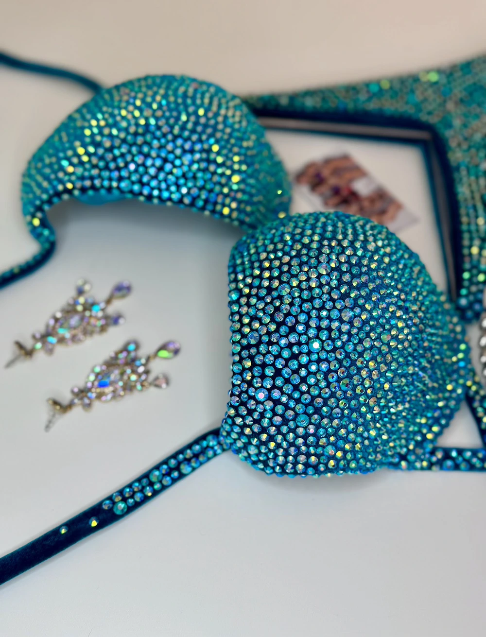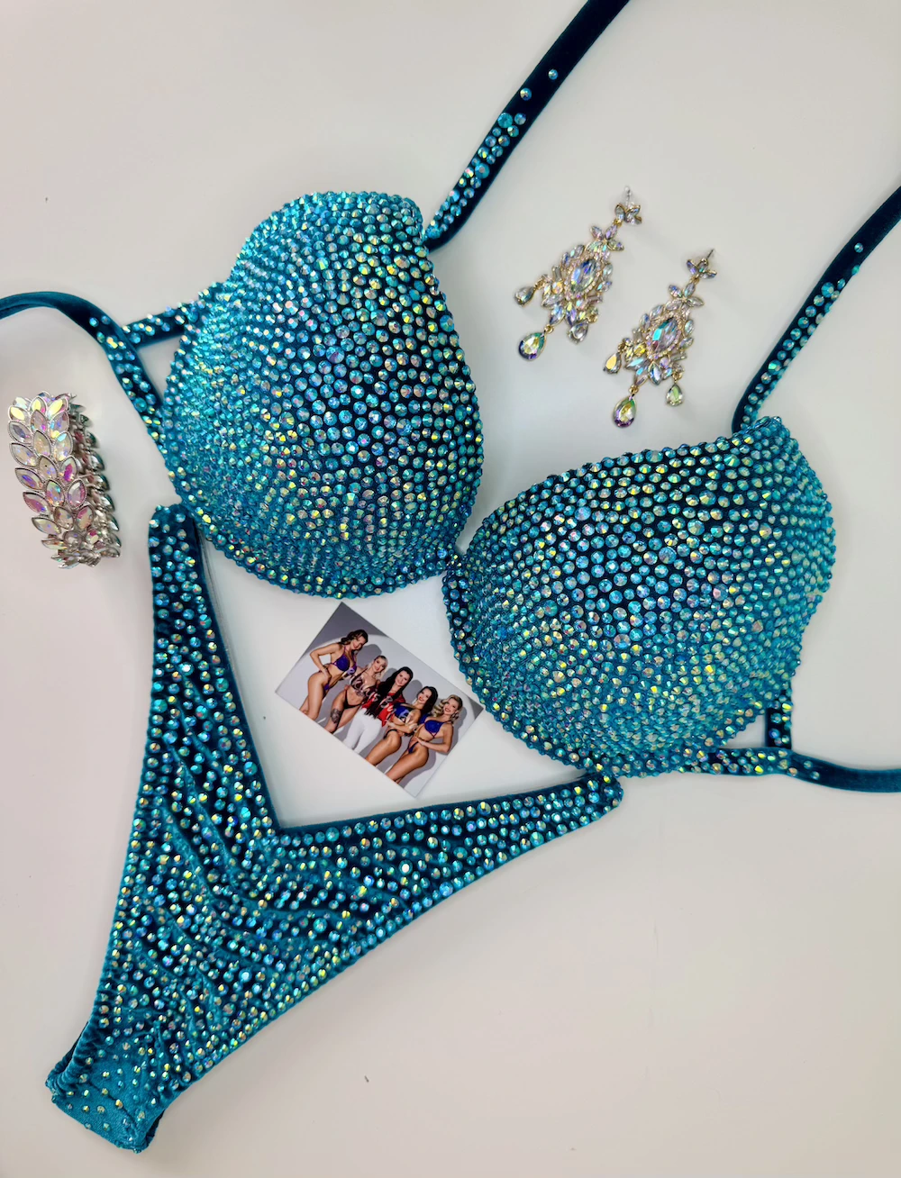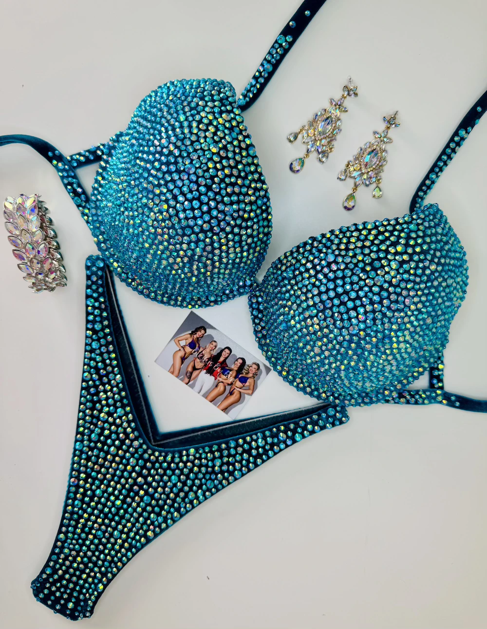 Meet “Luna” — turquoise jade green beauty, simple first glance, but full of magic. Chameleon rhinestones dance in the light, leaving little glowing gaps where the fabric shines through like moonlight. It’s affordable, but she doesn’t look it. “Luna” was made to stand out — effortlessly.