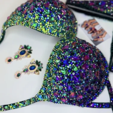 “Pandora Box” – A fully hand-embellished fitness competition bikini, featuring fourteen carefully curated crystal shades, layered to create depth, giving the suit a refined glow under stage lighting rather than harsh sparkle. An exclusive, premium and unique design-can be adjusted to suit all federations and categories: wellness, bodyfitness and bikini.